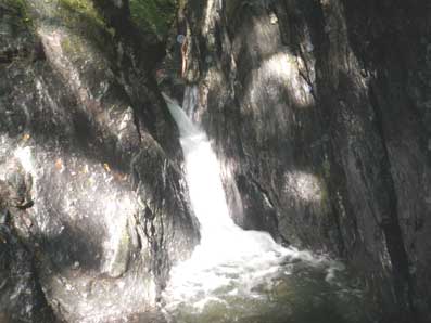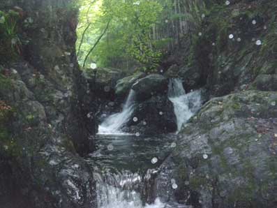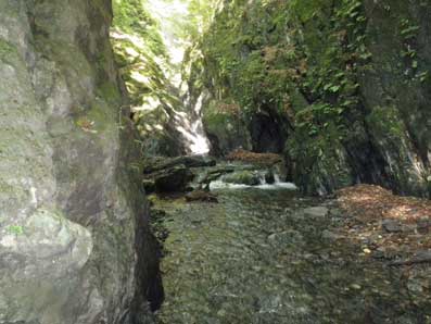 左写真、奧に滝が見える たぶん2段12メートルの大滝と思うが、 全くそんな大きさの印象が残っていない。 突っ張りで登っていくと案外簡単に超えられた。 |