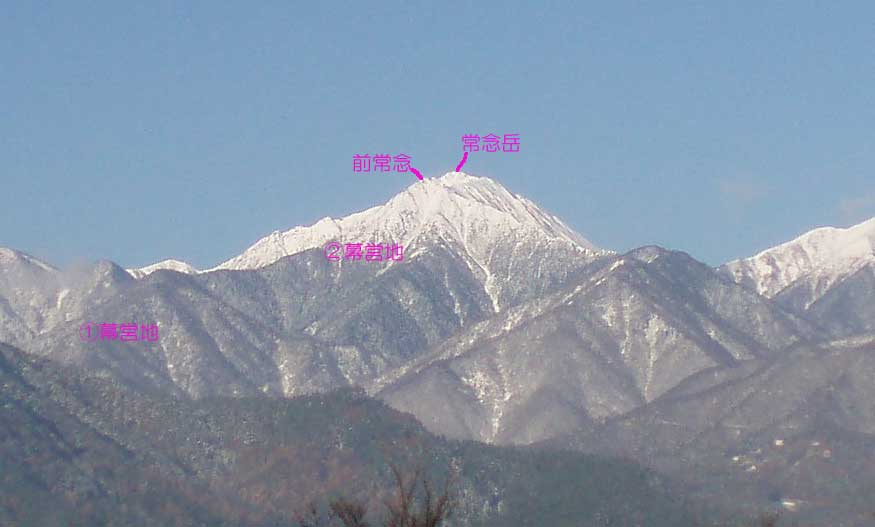 上の写真は2007年11月23日撮影したもので1月よりは少し雪が少ないかも知れないが常念岳の概観がわかるので再度掲載してみた。