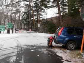 2011年1月1日夜出発。中央道の双葉SAで車中泊。 1月2日6時頃起床し朝食にSAでけんちんうどんを食べた。 須砂渡から三股へ至る林道は12月から通行止めだ。 ほりでーゆ四季のさとの奧でゲートがしまっている。 ゲートのそばに駐車できるスペースがあるかどうかが心配だったが、納得のいく場所があって良かった。 ここは数台とめられるだろう。 身支度と荷造りをして8:50出発。 |