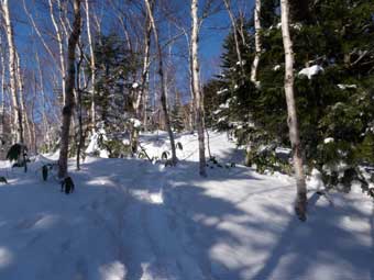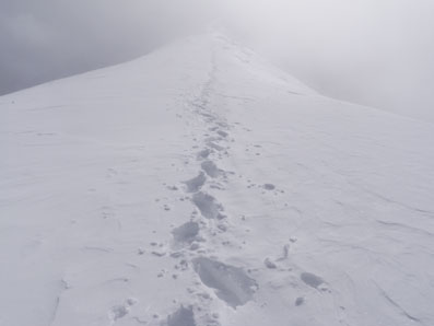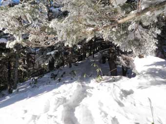尾根上のトレースを辿っていく。 |