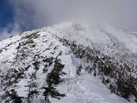 写真で向かって右側にある尾根が東尾根でこちらも積雪期に登れるルートだ。