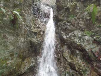 ←左、F1 5m 水流をまたぐようにして突っ張りで登った 水が冷たかった。 右、F2 7m横向ノ滝→ 気持ちよく登れる |