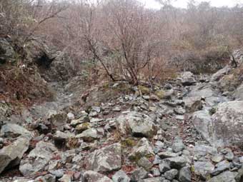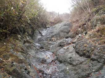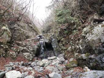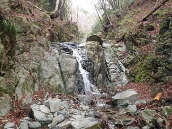 昨日職場の若者とここへ来ようと計画していたが 天気が不良のため中止にした。 この3ヶ月間山登りをしていないので、 リハビリのつもりで一人でやってきた。3回目だ。 自宅を4:30出発。葛葉学園奧の登山口に6:30頃 到着。 名水の水くみをしている人はいたが登山者はいなかった。 6:50出発 気温が低いので腕にはウエットスーツの 袖を切ったものをはめた。 少し登山道を歩いてから沢へ下りた。 |