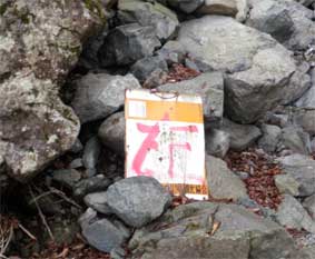 三ツ俣と言っても二股が続いている感じ。 分岐部に錆びた青いマグカップがぶら下がっていた。 |