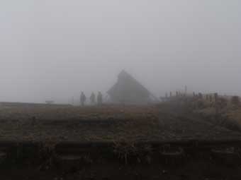 今日は高気圧に覆われて晴天のはずだったが 予想と違い時折霧雨が降っていた。 |