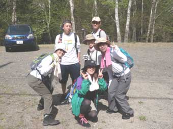 T隊員のレポート 「山登りに行こうよ。S隊長が連れてってくれるって!小学生でも登れるらしいよ」 そんな感じのお誘いを同期のYちゃんからいただいたのが始まりだったと思います 以前に富士山に登り痛い目にあってた私は迷いましたが 勇気を出して参加することにしました 靴だけは登山用を用意したほうがよいそうなので 店員さんに勧められるままに購入しました 「山ガール」なんて流行ってますが かわいいものが色々あって買い物はウキウキ気分でした♪ 瑞がき山に行く前に 那須岳にロープウェイで行く機会があり 同じ位の標高だったので これを歩いて登るのかと思うと更に不安になりました… 準備も整い 当日を迎え集合場所へ 山ガールと集合場所があまりに違和感があり 同期3人で笑いあってるとこへ隊長到着 それから集合し始め 隊長と6人の愉快な仲間達で出発しました H先輩はジップロックに入れたおやつを配ってくれました 二台で行ったので 手を振ったりして向かいました 途中のパーキングも楽しみのひとつですね |