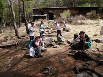 小屋の下の水場で水を補給し、小屋の前で休憩した。