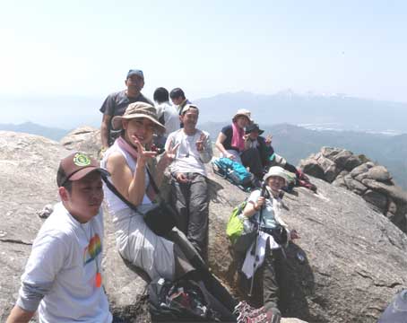 頂上は登山者で賑わっていた。晴天無風で眺めが良かった。金峰山がよく見え、八ヶ岳には未だ雪が少し残っていた。