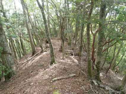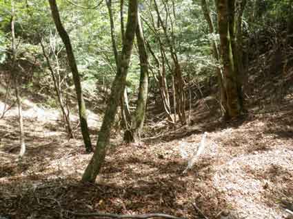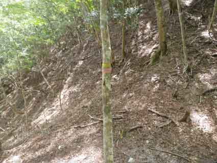 11:45稜線へ出た 余り困難なく稜線へ出られた。 しかしここも地図から想像する地形とは少しことなり、3本の稜線が合流するような形をしていた。 小割沢のコルへ向かうには稜線を南下する。 上の地図の様にほぼ真南へ向かう稜線の部分があり、ここは間違いなくそれと分かる。 ほぼ直角に東へ進路を変える部分にもよく見ると目印がある。 その先小割沢のコル(仮称)へ降りるところで前回ルートを見失い左の稜線に入ってしまってから 沢筋へおりたが、 今回は小割沢のコル方面の目印に気が付いた。 |