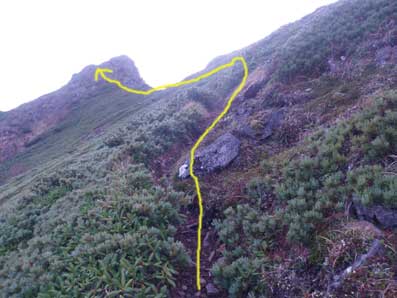 登山道と関係ないところにピンクのリボンなども付いていて登山者を惑わす。下りでも一カ所変なところへ誘い込まれそうになったが気がついた。