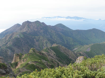 岩壁帯を過ぎると南アルプスや北アルプスがよく見えた。 |
