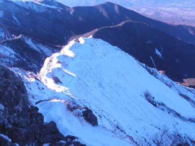 少し道に迷っていたので尾根に取り付いたのが3時近くなっていた。 ゆっくり登っても30分ほどで尾根上の開けたところに出た。 |