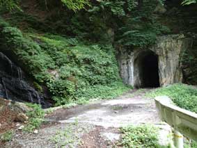 はじめは林道歩きだ。少しあるくと小渋湯という標識があるが、温泉施設があった名残は感じられない。 ここから広河原10km,5時間と書かれているが誇大広告だ。 暗いトンネルもあるがヘッドライトは不要である。 |