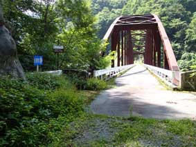 山奥には不釣り合いな立派な七釜橋が見えてきた。 |