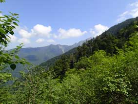 8月8日(木)4時起床、4:40千葉の自宅を車で出発。この先数日間は晴天が予想されている。 首都高、中央道ともに大した渋滞もなく松川ICで高速を降り、大鹿村の集落から奥地へ向かう。 途中河原へ向かう道と分かれるところがあって紛らわしいが赤石荘の看板のある方へ向かえば良い。 工事中のところなどがあって通行止めになっていないか少し心配したが、 未舗装の道を辿って9:30頃湯折のゲートに到着した。 車が3台ほどとまっていた。小渋川のルートは案外登っている人が多いようである。 荷物の最終的な取捨選択をして、登山届を提出して10:00に歩き始めた。 |