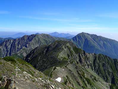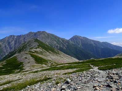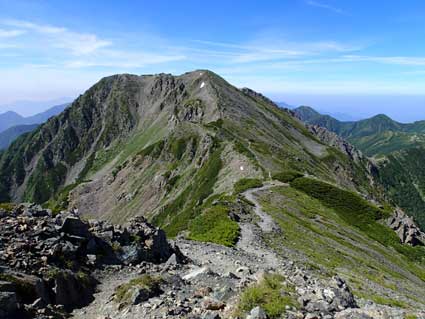 8:50分出発。 小赤石岳まで小さな起伏があった。 小赤石岳から赤石岳を振り返った写真 |
