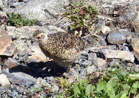 左は進行方向で荒川三山。 雷鳥の親子に出会った。写真は子供の雷鳥 ![]() |