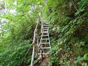 2時間半登って左岸に小滝が流れ込む二股に到着。この滝の方へ進む。 左の方が水流は多いが百間平に向かい上部は崩落地で登攀は困難である。 この滝は水流左側の登れそうに見えたが、無理はせず少し左へ離れたところから登った。 こちらも崩れそうで足場の悪い所だったが、なんとか登れた。 このルートで唯一気を使った場所だった。 ![]() |