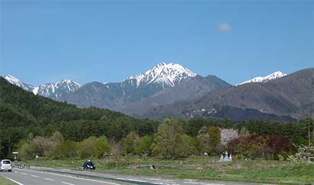 | 春の安曇野からみた常念岳 | 登山道は始めのうちはまるで夏山だ |