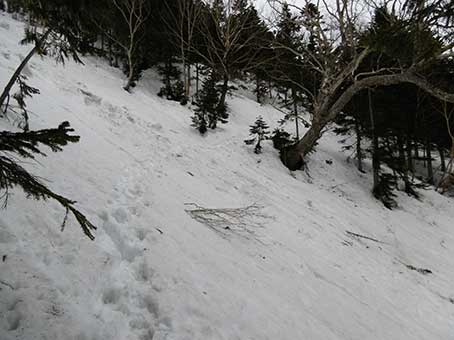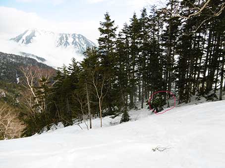 下からは見えなかったが、少し登ると、以前に幕営したところに立っていたダケカンバが確認できた。