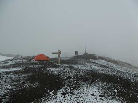 空身で頂上へ向かった。6時頃出発した。テント場にはテントが3張りあった。6:40頃頂上についた。