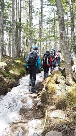30メートルくらい雪の上を歩くところがあったが、傾斜が緩いのでアイゼンなど必要なかった。