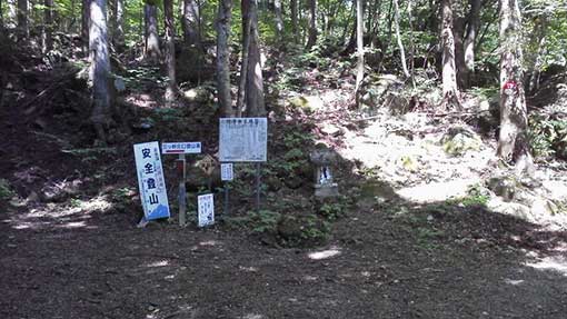 9:20 北口登山道に到着した。 ここにも駐車スペースはあり、ここまでバイクで入ってきても良かったと思った。 車高の低い車では、こするかもしれない。 この登山道は25000分の1の地図に書かれていないので登山口の位置と標高が良くわからなかったが 後で見直してみると黒い実線が林道を正しく示していたようだ。 バイクを停めた所は750メートルくらいのところで、登山口は900メートルのところだ。 |