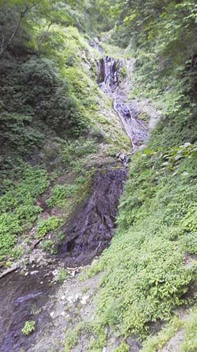 階段状の涼しげなナメ滝だ これを越えると”初滝”だ。 |