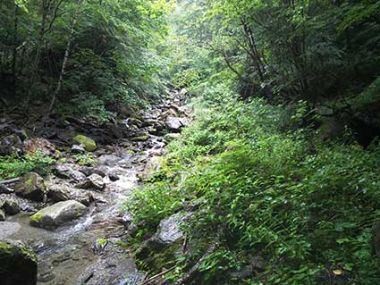 | 保利沢小屋の先は沢も細くなってくる。 暫く左岸をたどる。 |