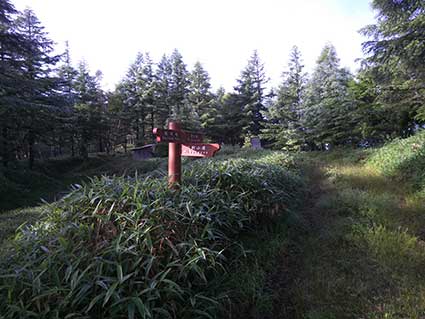6:40 峠についた。 ここには 車も通れる道がある。林業に使われていたものか。 登山用ではないだろう。 |