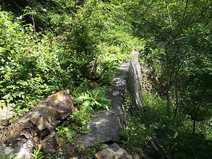 石積みのところがかつての道路の端にあたる部分だろう。 |