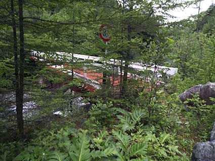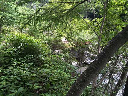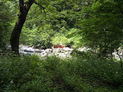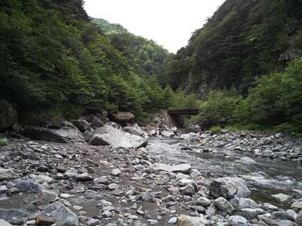 | 徒渉して右岸を進む | 11:05壊れた吊り橋が出てきた。 |