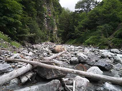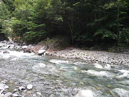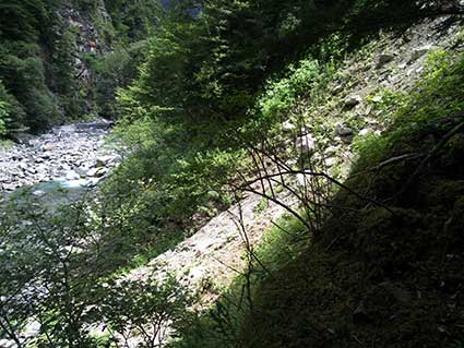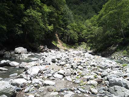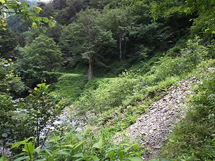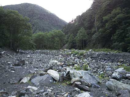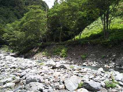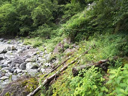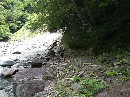 | 徒渉して左岸に戻った | また崩壊地で河原に出た |