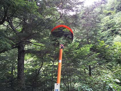 | カーブミラーは5本くらいあった。 自分が写っている。 |