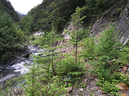 大井川東俣には平成6年頃までは林業の為にトラックも通れるような林道が通っていたが、その後の台風で大打撃を受け、