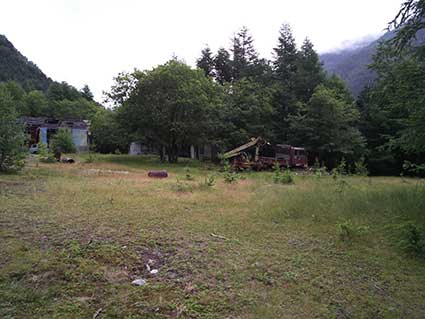 途中に、パルプ産業のためと思われる工場や、宿舎などの建物や、トラックがうち捨てられ、時代から取り残された廃墟のようなところがあるのも興味深い。