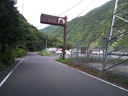 12:15奈良田越の看板。 地図で予想する場所よりかなり上流にある。 |