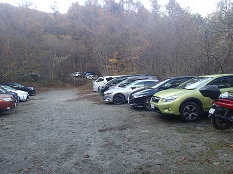 なんとか一台分の隙間を見つけて、バックで入った。駐車料金は青木鉱泉ではらうのだが、2日分で1500円もとられた。