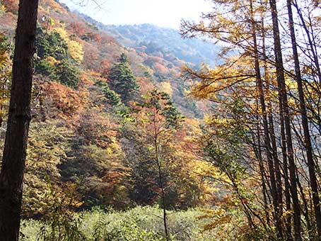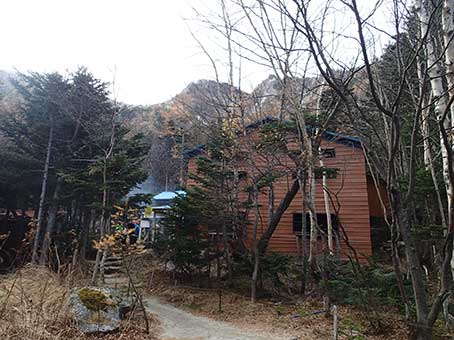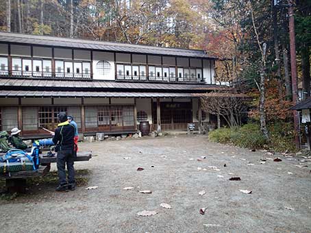 12:15ころ登山口まで降りて、13:00頃青木鉱泉に到着した。沢を渡るところが車道の橋しかなく、遠回りだった。
