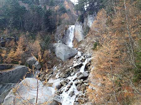 下の写真は五色の滝で立派だ。五色という意味が分からないが、虹でもかかるのだろうか。