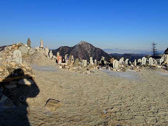 風が強かったが、甲斐駒の手前にお地蔵さん達が並んでいる様子が神々しかった。