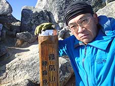 赤抜け沢の頭から観音岳まで強風で、ヤッケの頭巾をかぶって登った。 良く晴れて景色は良かった。 8:30観音岳頂上到着。薬師岳よりも高い。 右上は観音岳からの甲斐駒 |