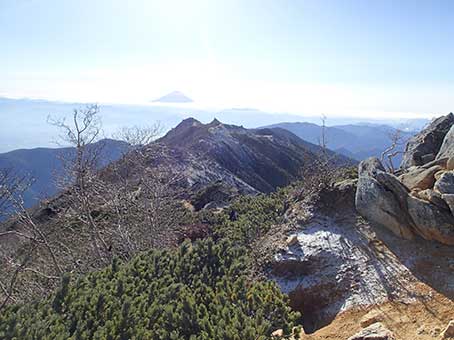 鳳凰三山へは春に御座石鉱泉から、夏に家族でドンドコ沢から、夏に沢登りでシレイ沢から、初冬に中道から往復、の4回登ったことがある。