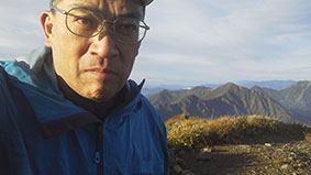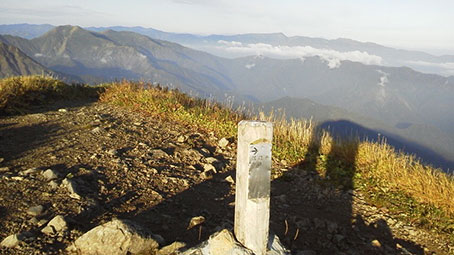 | 避難小屋に荷物を置いて、茂倉岳頂上へ向かった。朝日が嬉しかった。 6:30登頂。東側は逆光で見えにくかったが、西側の景色は良かった。 自宅へ無事登頂の連絡を入れたが、電波の状況は悪かった。 |