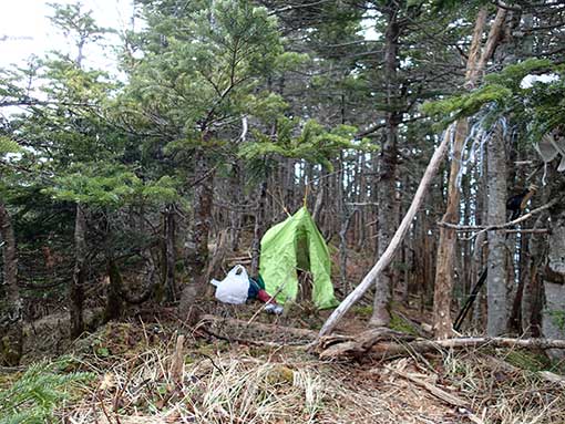ここは積雪期にはいいテント場になるが、無雪期では少し床がかたむいていた。