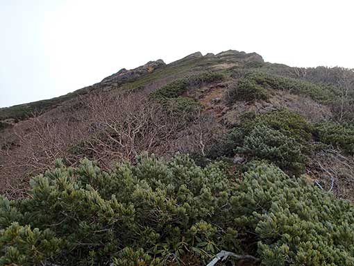下から見た限りではまだ雪は積もっていないようで、ピッケルは持って行かず、軽アイゼンだけ持って行くことにした。