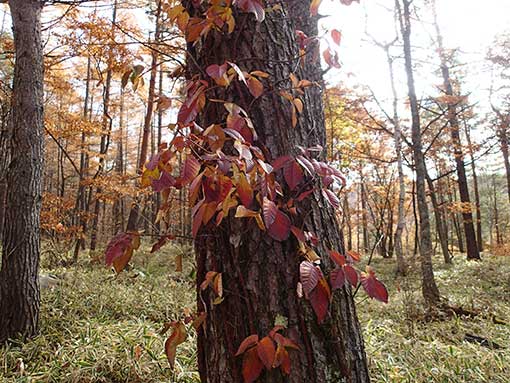 駐車スペースの横の木に巻き付いているツタの紅葉が面白く、以前にも写真を撮ったが、今回も撮っておいた。