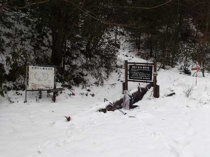 中央本線須原駅から山間の村へ入り、林道を通って伊奈川ダムのさらに上流にある駐車場に車を止めて、登山口まで1時間半歩く。置いていく