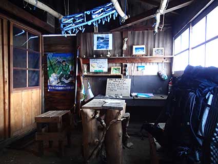 トイレの入り口は雪かきをしてドアが開くようにした。 時間が早かったので、昼食として袋麺のチャルメラを食べた。 着ている物が雨で少し濡れて寒かったので、15時頃から2時間くらい シュラフに潜り込んで昼寝をして体を温めた。 シュラフはモンベルの#1を持ってきた。 #0も持っているが重いので、選ばなかった。 この時は寒かったが、夜寝るときは寒くなかった。 17時頃一旦起きて夕食のペヤングソース焼きそばを食べた。 小屋の外は雪が大分積もった。 小用に行くための道をラッセルしておいたが、雪で埋まってしまった。 コンロを使ったときの暖かさはテントの方が優れているが、 この小屋のリビングは適当に狭いので、 火を使うことによって少し暖まった。 焼きそばをたべ、ウィスキーのお湯割りを飲んでシュラフにもぐったが 昼寝をしたあとだったのでなかなか寝付けなかった。 |