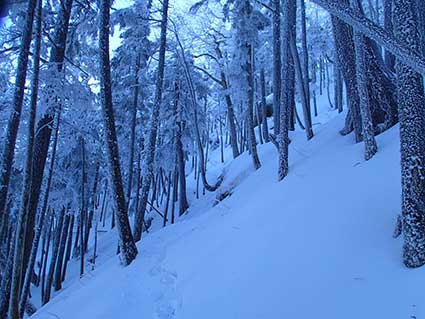 昨年末も、ここに来たが、ラッセルに時間がかかり福栃山頂上付近で撤退した。